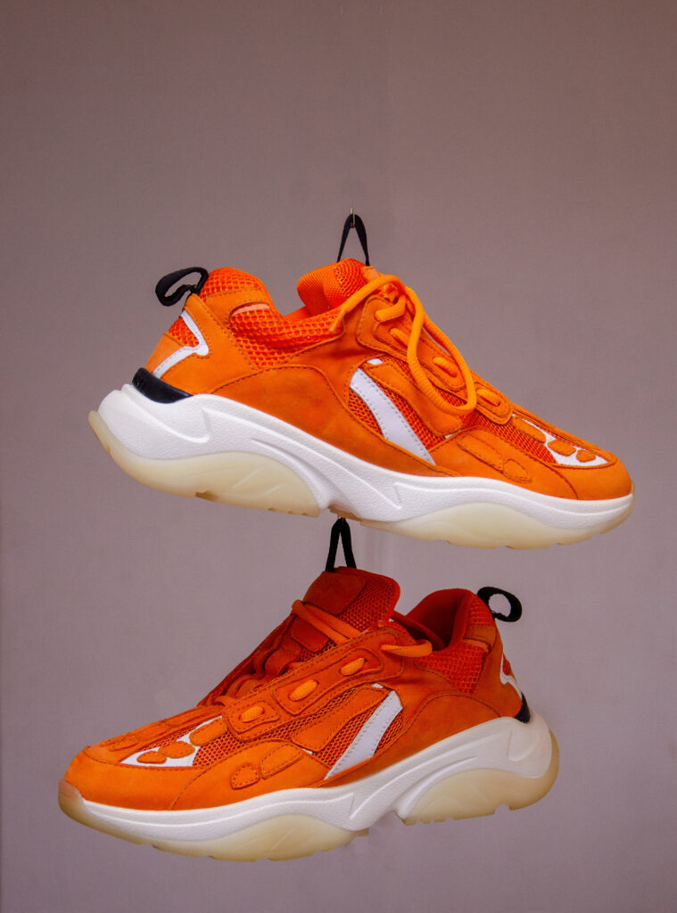Make a bold statement with these chunky retro-inspired sneakers that perfectly capture the '90s dad shoe aesthetic. Featuring a striking mix of orange, and cream tones, this sneaker combines premium suede, smooth leather, and breathable mesh panels for a multi-textured look that's impossible to ignore.