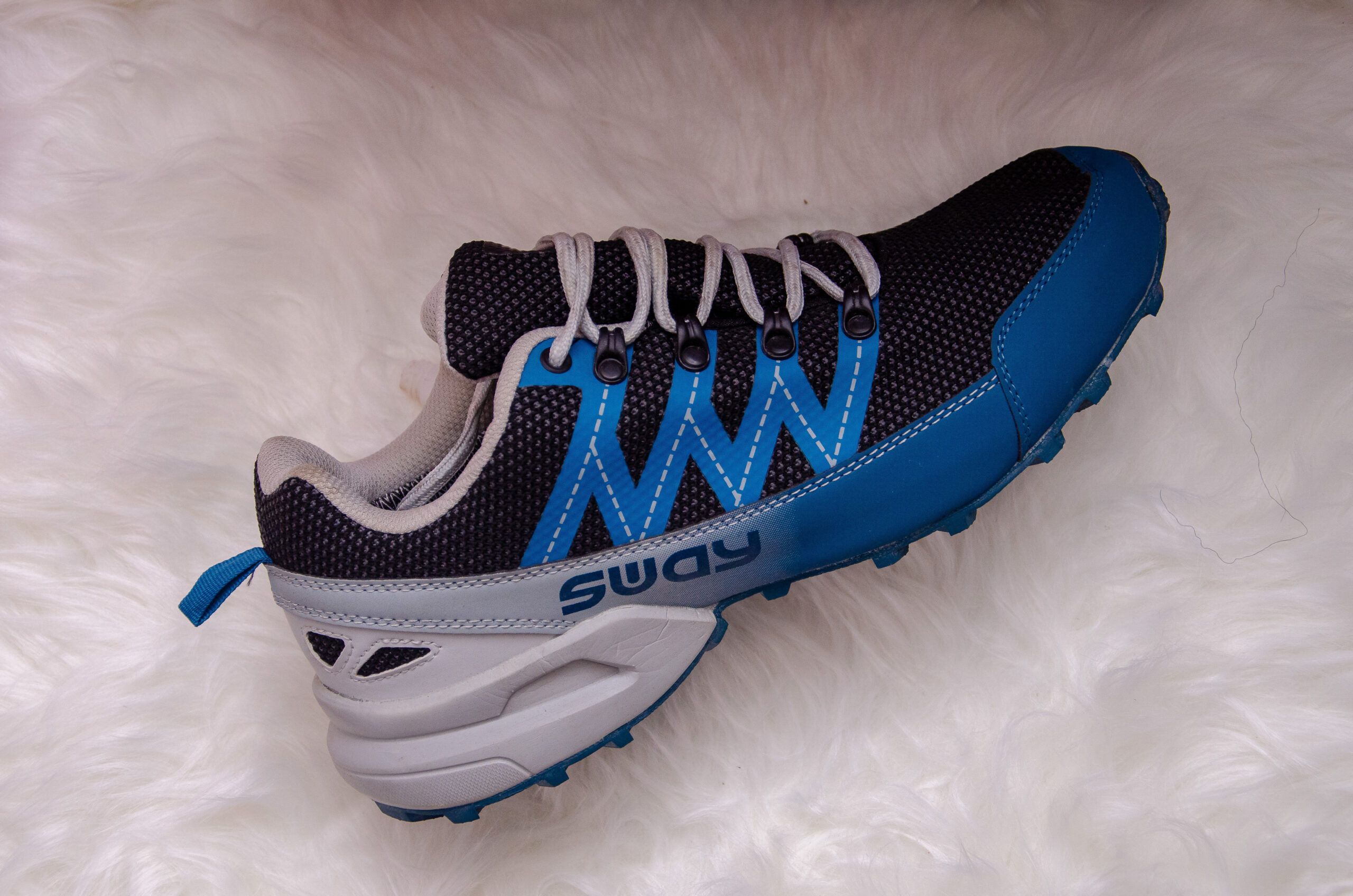 SWAY Branding: Prominent logo on the midsole and reflective stitching details throughout